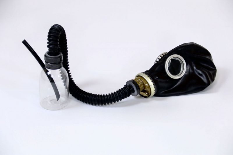 Gasmaske aus Gummi zum tragen während der Session als Fetischvorliebe und / oder zur Atemreduktion.