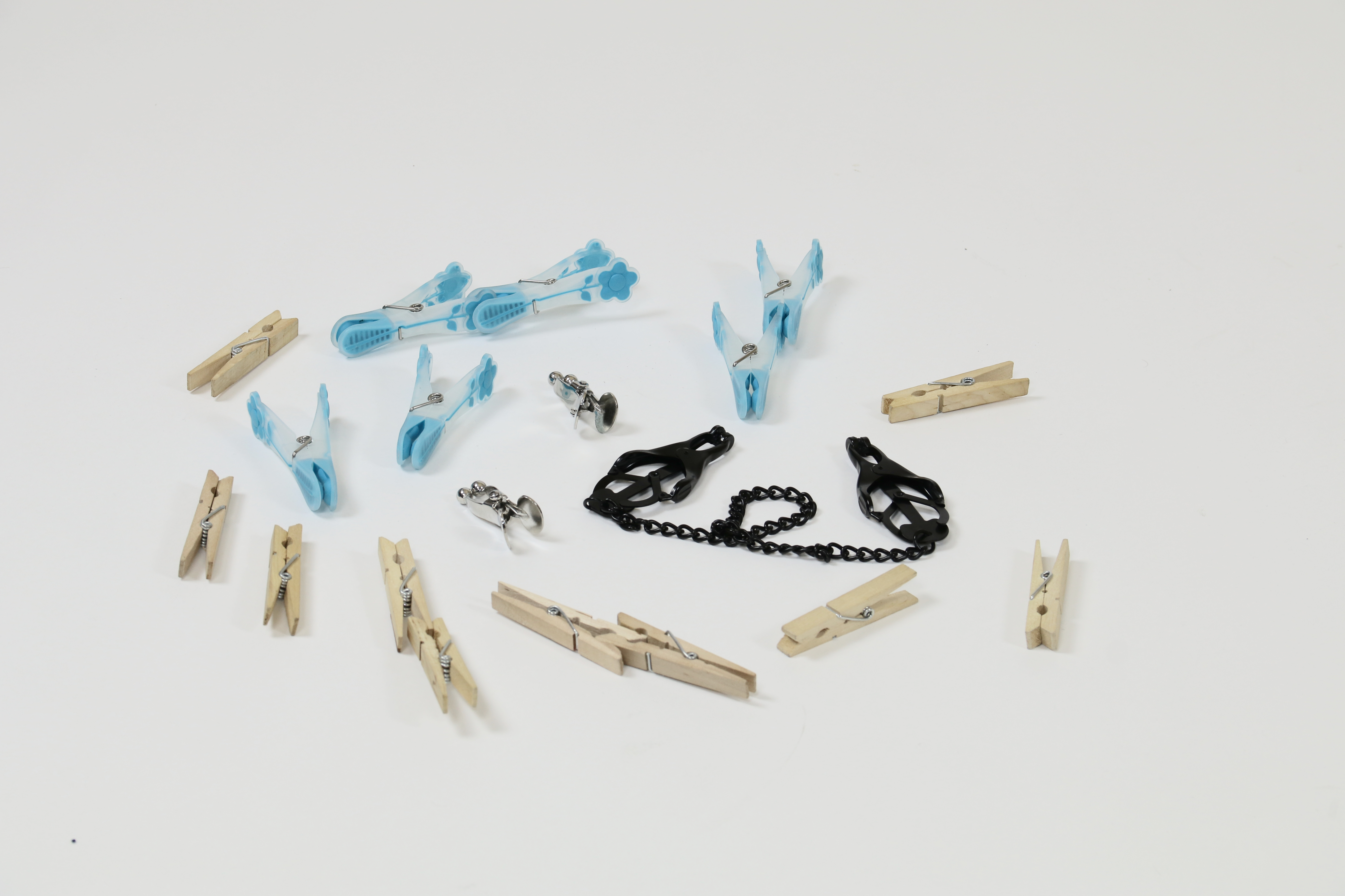 SchließenMeine Auswahl an Klammern für Brustwarzen, Penis und Hoden ist sehr vielseitig, von leicht bis schmerzhaft ist für jeden Klammerliebhaber etwas dabei, sogar noch mehr als nur auf den beiden Bildern zu sehen, wie zum Beispiel: Wäscheklammern aus Holz und Gummi, Edelstahlkugelklammern, Klammern mit Gummistrukturzähnen und Kette ( um daran zu ziehen oder Gewichte anzuhängen ), Arterienzangenklammer aus Plastik, Spitzklammern aus Plastik, Klammern mit Zähnchen und Schlaufe ( um daran zu ziehen oder Gewichte anzuhängen ), Klammern mit Gewichten, Stromklammern, ...